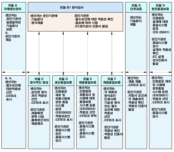 그 부속물87/404/EEC 90.7.1 92.7.1 B+C, B+F 11 가스기기 Appliances BurningGaseous Fuels 가정용 가스기구 90/396/EEC 92.1.1 96.1.1 B+C, B+D, G, B+E, B+F 12 통신단말기 RTTE Raiod and Telecommunications Terminal Equipment 유.무선통신 단말기 1999/5/EC 00.4.8 01.4.8 A, H 및
