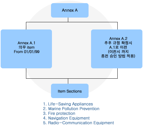 해상에서의 인명 보호, 선박의 안전 및 해양 오염 방지를 위해 선박에 설치 또는 공급되는 각종 정부검사 해당제품(Statutory items)들에 요구되는 형식,